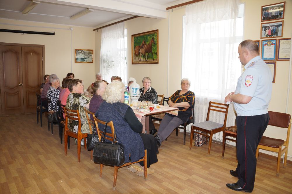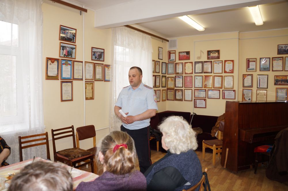 Встреча сотрудников ОМВД и ветеранов прошла в дружеской, и располагающей к откровенному разговору, обстановке. Стражи порядка рассказали о распространённых схемах мошенников, и о новых сценариях телефонных разговоров, направленных якобы «на выплату и компенсацию на затраты пенсионерам за приобретенные лекарственные средства в течении года в аптечной сети», и «доброжелателях», готовых помочь при потере документов, ключей, телефонов.