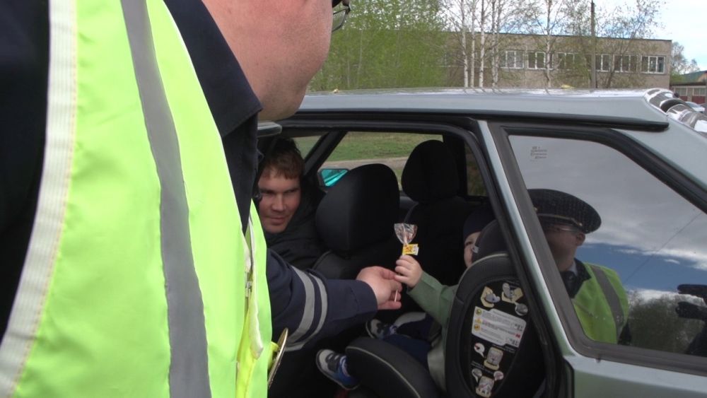 Всем малышам, находящимся при перевозке в автомобиле, стражи порядка вручали сладкие угощения, по согласованию с родителями.