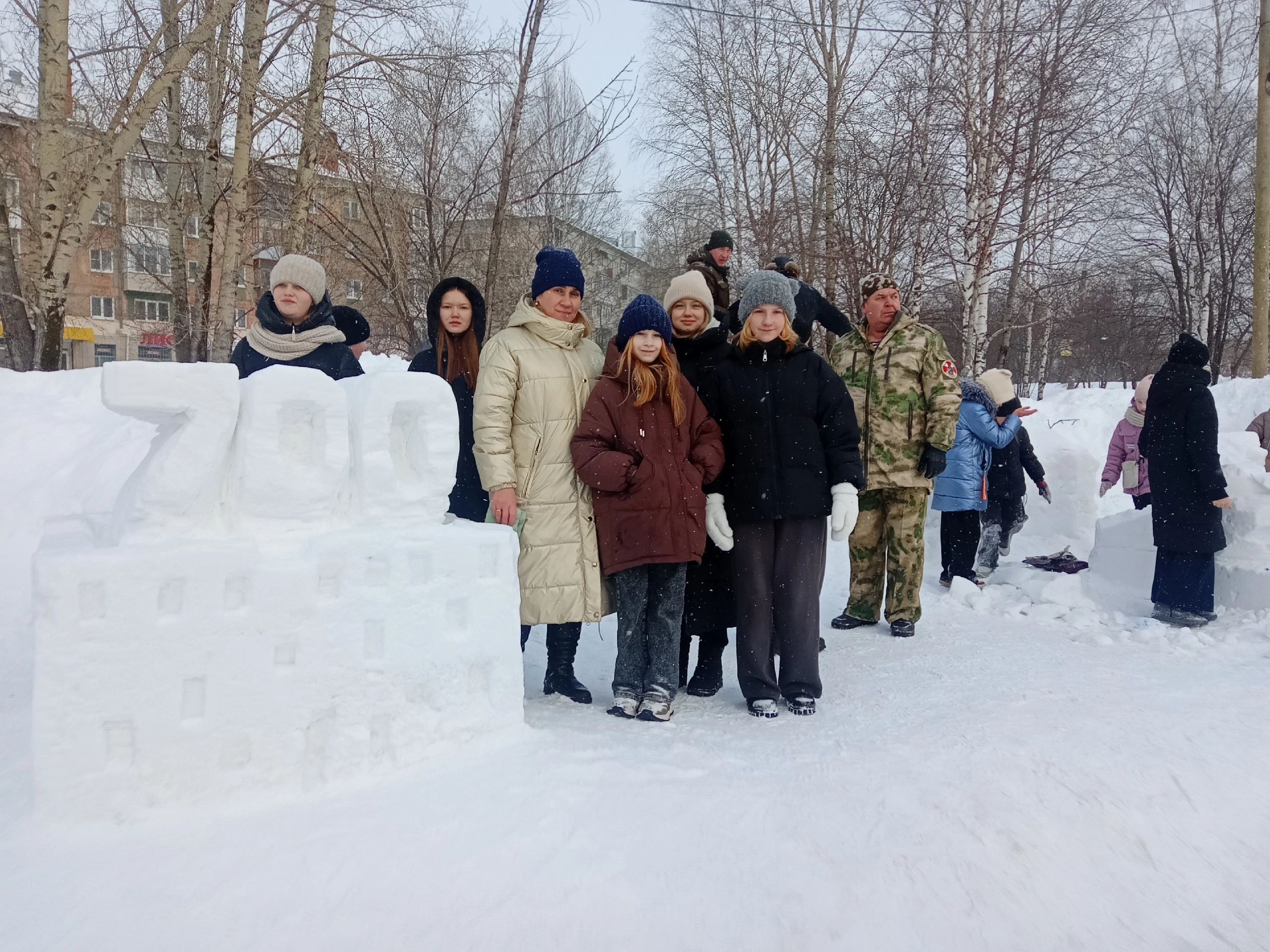 - Все участники собрались по приглашению организаторов конкурса на территории Гарева поля. Конкурс объединил детские сады, школы, общественные организации, которые представили ветераны боевых действий. По сигналу организаторов «закипела работа». За ее ходом с интересом наблюдали зрители, в течение нескольких часов участники мероприятия вырезали фигуры. Горячий чай и вкусные пончики согревали мастеров. Снежная фигура «Школьного дозора» была посвящена заводу 700, который в годы Великой Отечественной войны выпускал лысьвенские каски, спасшие жизни многим солдатам. В завершении февральского мероприятия, направленного на патриотическое воспитание подрастающего поколения, компетентное жюри определило победителей конкурса Команда «Школьного дозора» заняла почетное 3 место, - рассказала Елена Алексеевна.