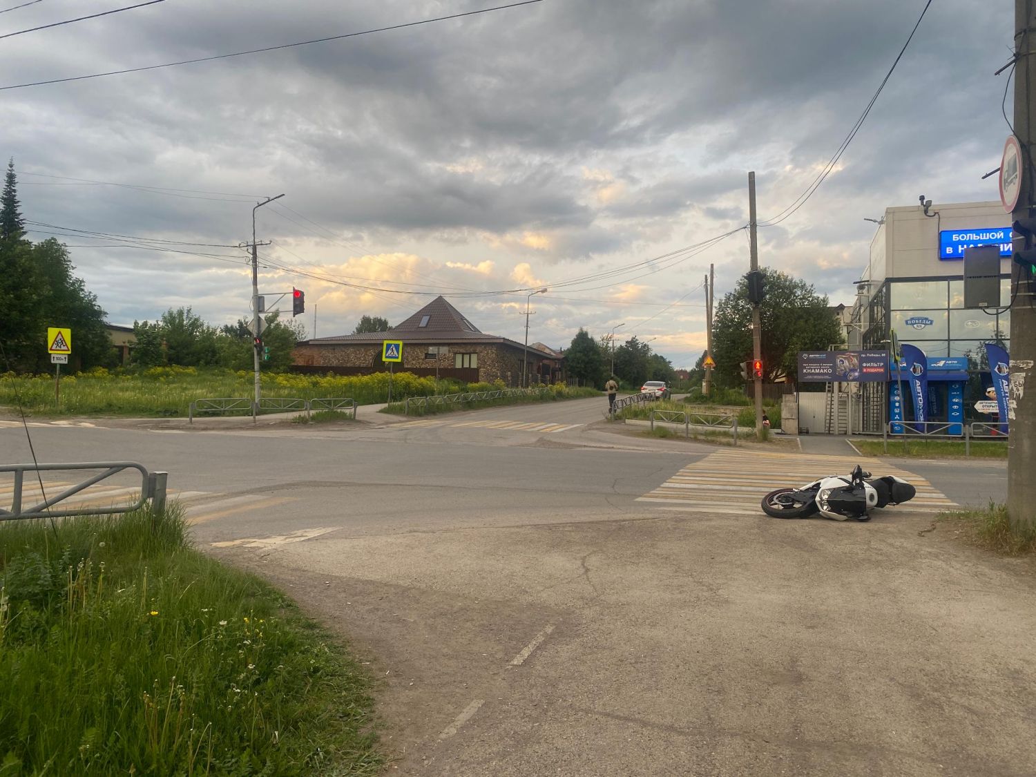 В вечернее время, 4 июня, по пр. Победы, со стороны ул. Репина в направлении ул. Чапаева, двигался неустановленный мотоцикл, под управлением неустановленного водителя, который при повороте налево на регулируемом перекрестке ул. Чапаева - пр. Победы не уступил дорогу мотоциклу Kawasaki Ex 250, под управлением водителя 1986 года рождения, движущегося со встречного направления прямо, после чего скрылся с места ДТП. В результате ДТП пострадал водитель мотоцикла Kawasaki Ex 250.