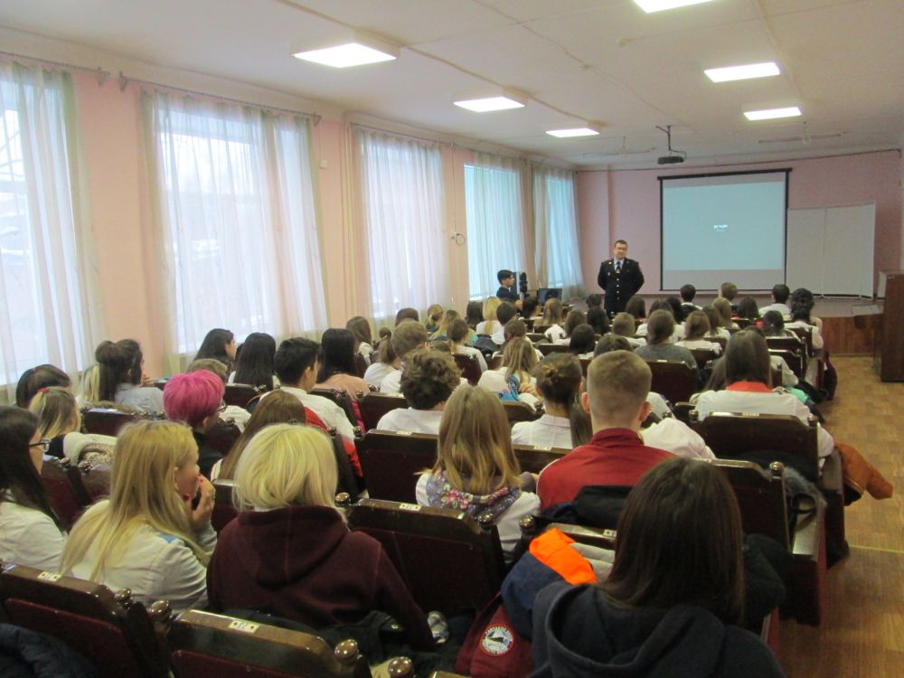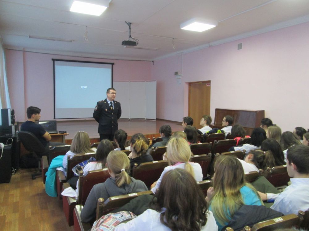 Сегодня сотрудники территориального органа полиции встретились со студентами одного их образовательных учреждений города. В актовом зале училища собралось более 50 человек – это педагоги и учащиеся разных курсов учебного заведения.