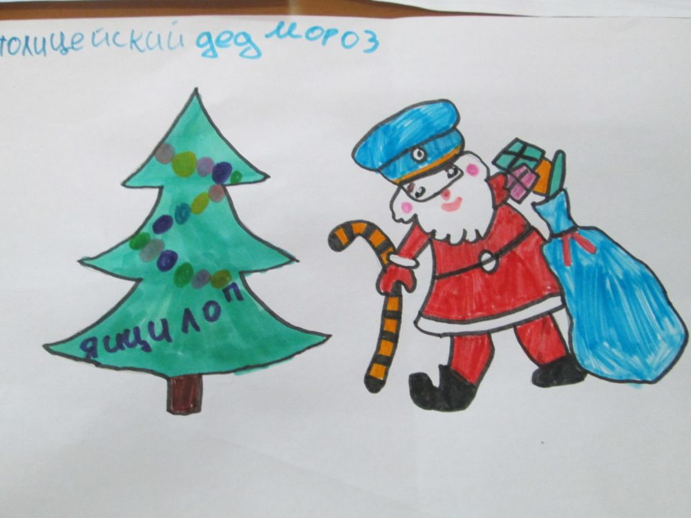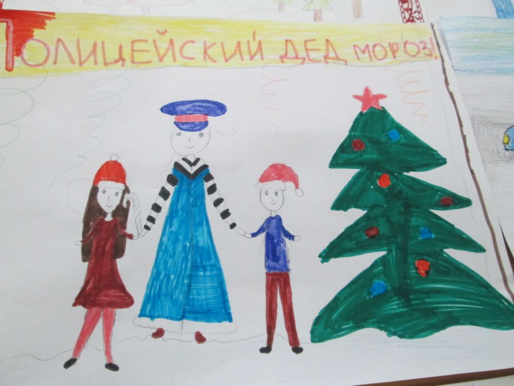 В творческом конкурсе ребята порадовали гостя красочными рисунками и искренними пожеланиями здоровья и счастья! Всем участникам игры «Соблюдать ПДД в каникулы – полезно!» добрый полицейский Дед Мороз вручил подарки и сладкие угощения.