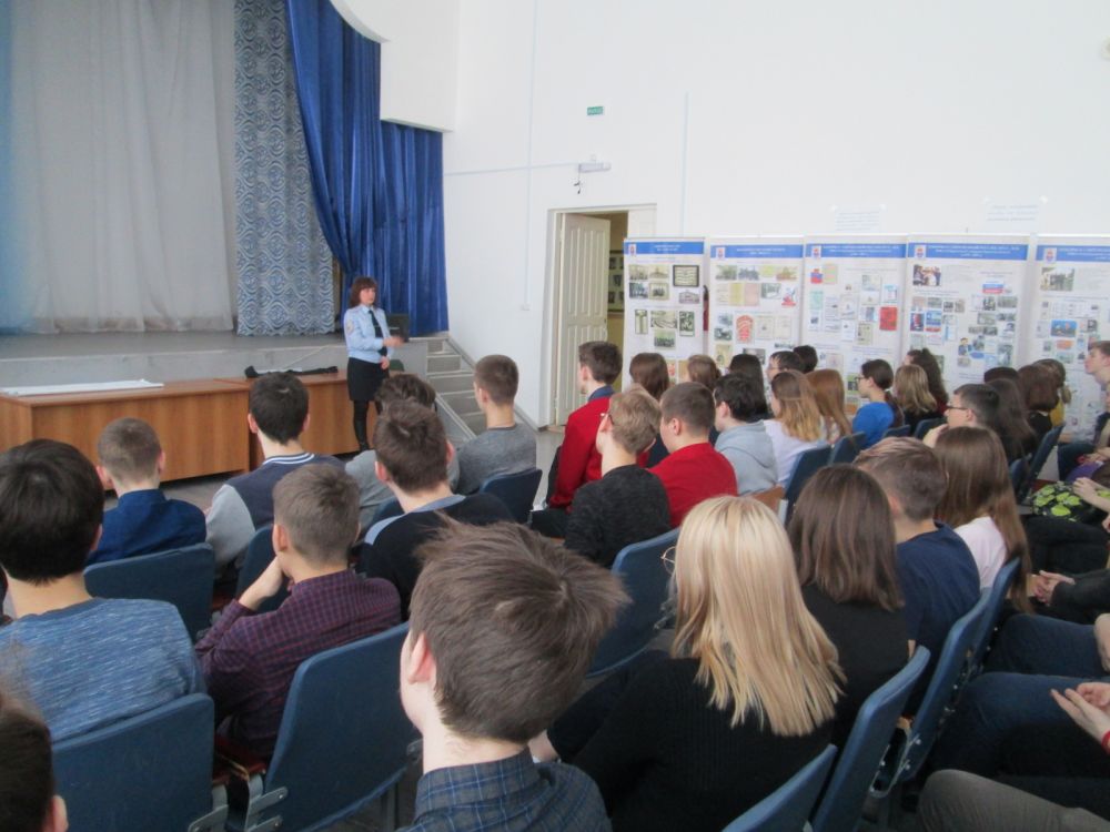 Инспектор отдела по вопросам миграции на встречах отмечала необходимость бережного отношения к паспорту гражданина Российской Федерации, напоминала о том, что, согласно законодательству, его необходимо менять по достижению возраста 20 лет, предупреждая учащихся, что в случае нарушения установленного срок – 30 дней, придется заплатить штраф.