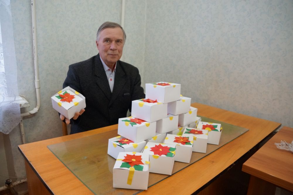 В первом этапе акции, который был реализован в конце ушедшего года, педагоги и учащиеся изготовили праздничные новогодние упаковочные коробки для сладких подарков для ветеранов.